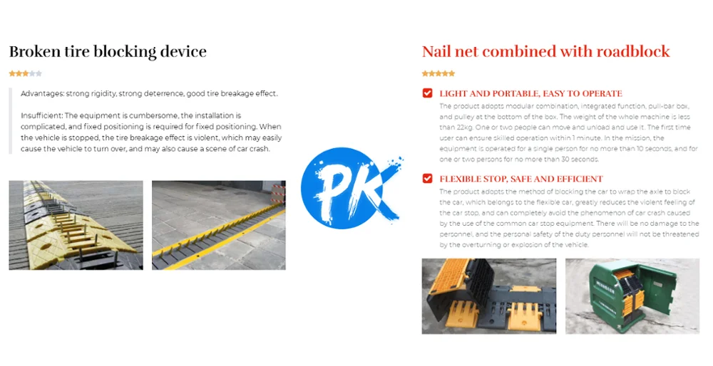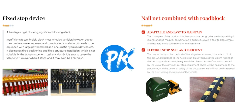 The net nail combined with the roadblock is a newly developed car stop product at home and abroad. It can protect the personal safety of law enforcement people while effectively and quickly stopping the car. It is a revolutionary anti-car artifact.