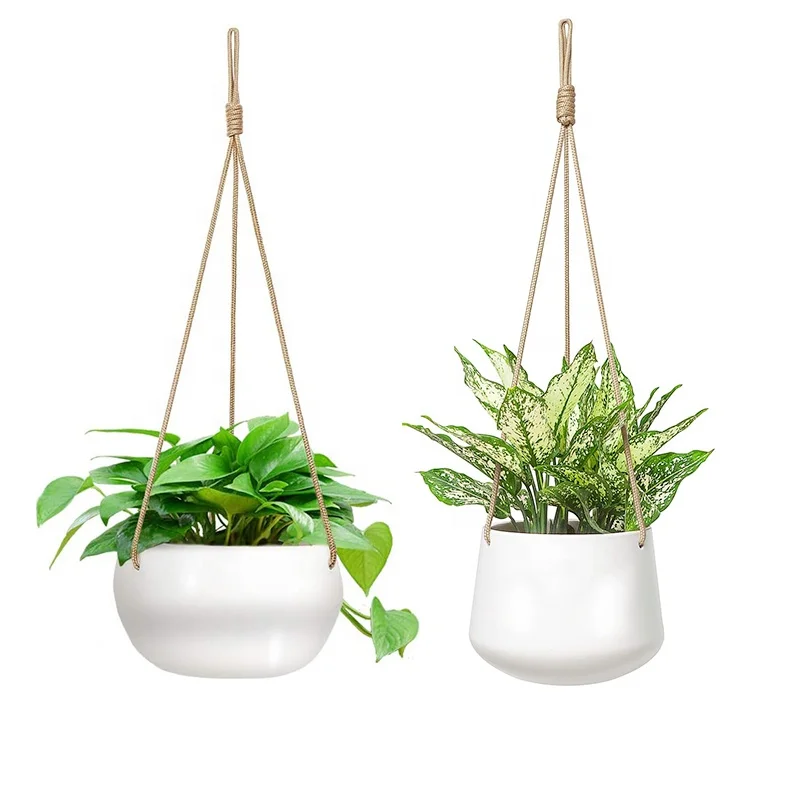 Набор из 2 белых керамических подвесных растений, неглубокие 8 дюймов и глубокие 6 дюймов для комнатных и уличных растений, фарфоровая подвесная корзина