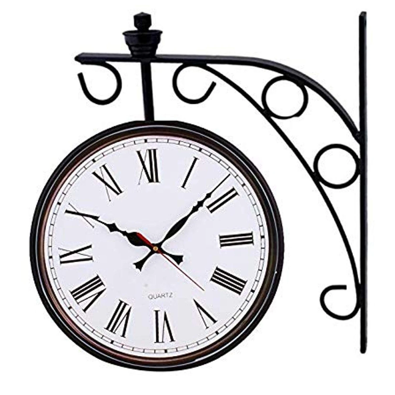 5-дюймовые наружные двухсторонние Подвесные часы с железным металлическим каркасом стеклянный объектив кварцевый механизм водонепроницаемые настенные