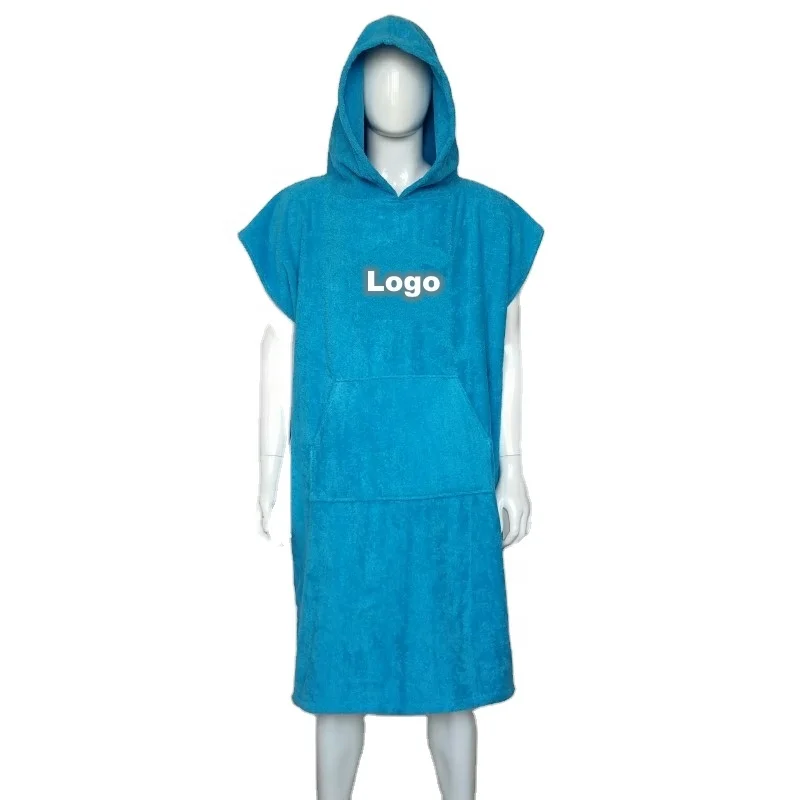 Настраиваемое синее пончо для серфинга с капюшоном для взрослых/детей, махровое пляжное полотенце из 100% хлопка, халат для переодевания бассейна