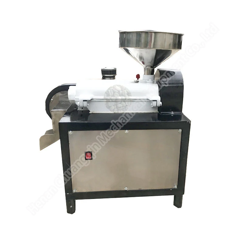 Almonds, hazelnuts, etc., are manually fed into the hopper and rolled into the drum first. Due to the rubbing force between the grain plate rotation and the concave plate of the shed, the kernel shell is peeled off.