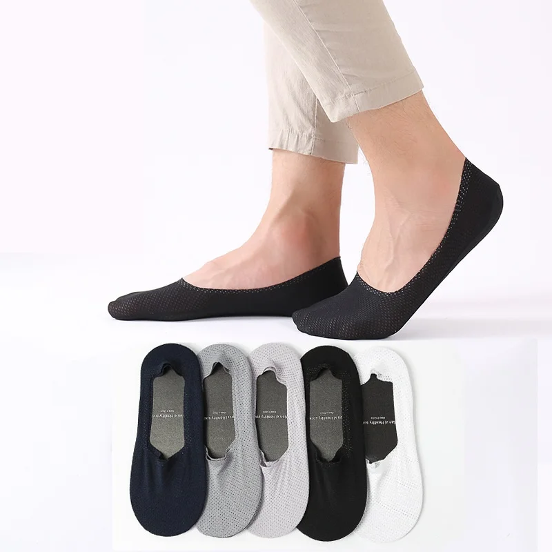 Изготовленные на заказ дешевые белые черные летние новые ледяные шелковые сетчатые однотонные носки мужские модные силиконовые неглубокие носки без показа