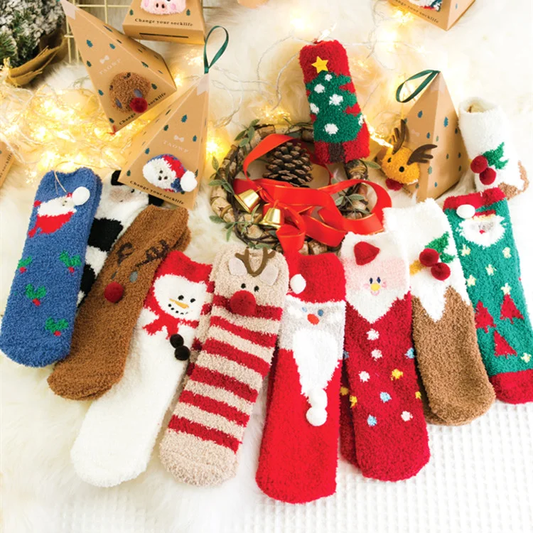 Новогодние толстые теплые флисовые Носки на заказ оптовая продажа подарок для малышей рождественские носки вечеринки