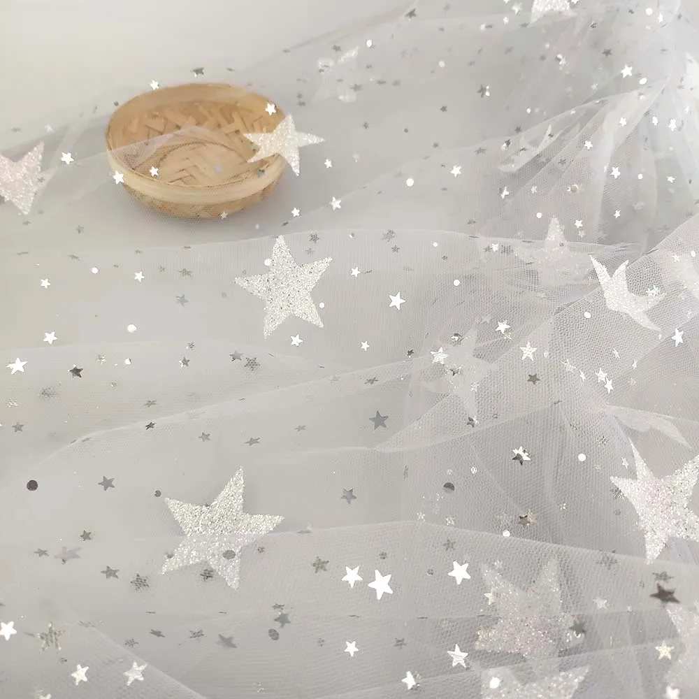 Тюль серебряный звездный стиль блестки низкая цена сетчатая ткань