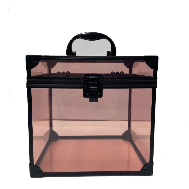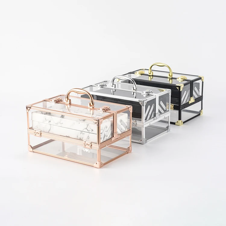 factory hot sale double open rose gold beauty transparent acrylic makeup case with 4 tray box acrylic cosmetic box