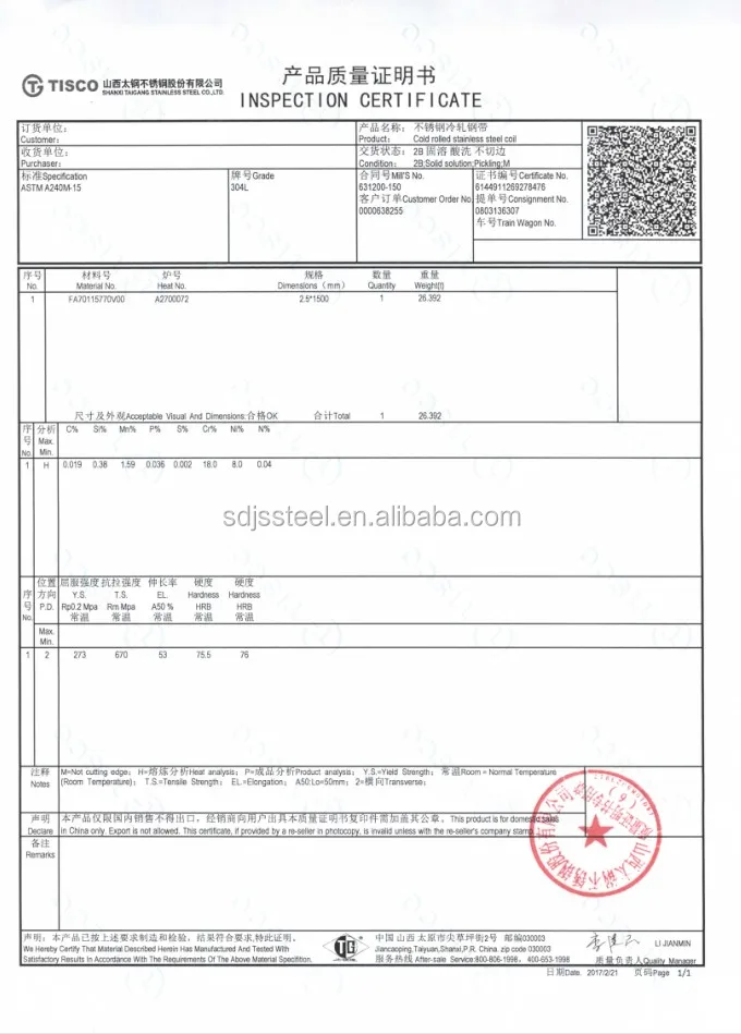 Packing | Standard seaworthy packing or according to customer's request |