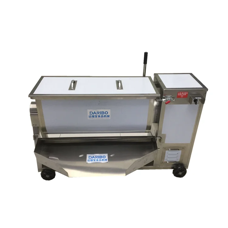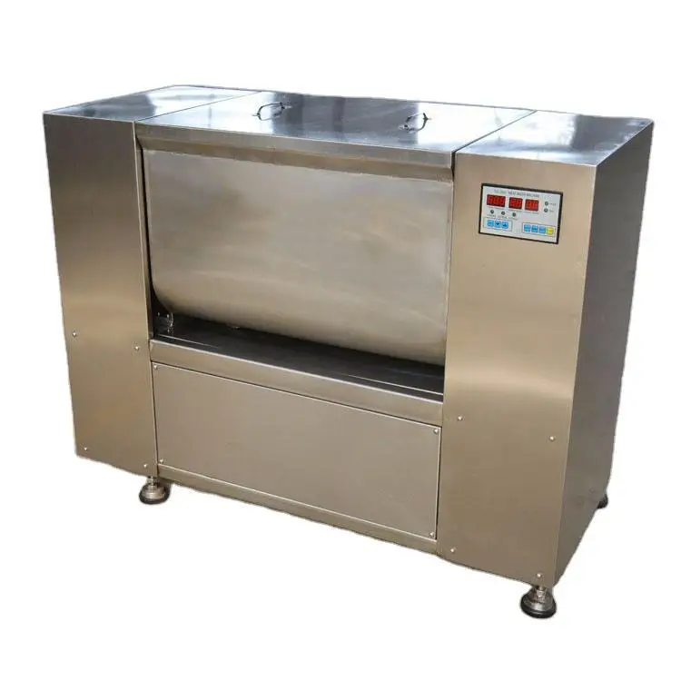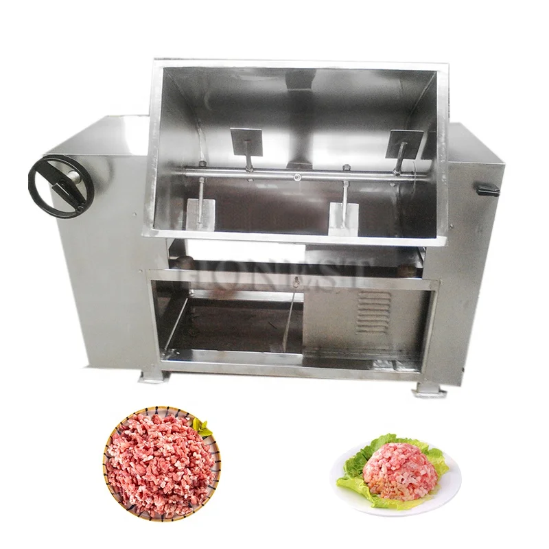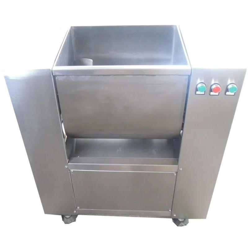The whole body of Meat Mixing Machine is top-grade stainless steel, sanitary, conform to the hygiene standards. High working efficiency, saving time and labor. Besides, they are 50L, 70L,100L, 150L capacity stuffing mixer for choosing , on base of these, stuffing mixer is highly popular among customers. The meat mixer is suitable for hotel, restaurant, food processing factory. meat mixer is also suitable for medicine, chemical factory and so on for making and modulating the raw material.