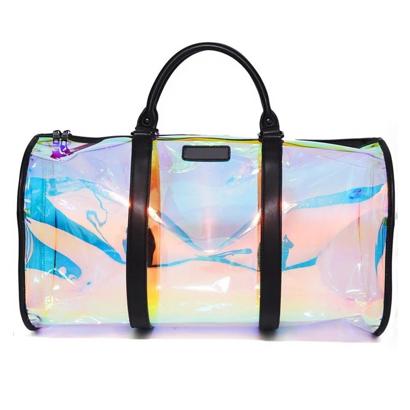 Голографическая Радужная Лазерная тренировочная сумка с логотипом на заказ, прозрачная, прозрачная, водонепроницаемая, из ПВХ, для путешествий, спортзала, спортивная сумка