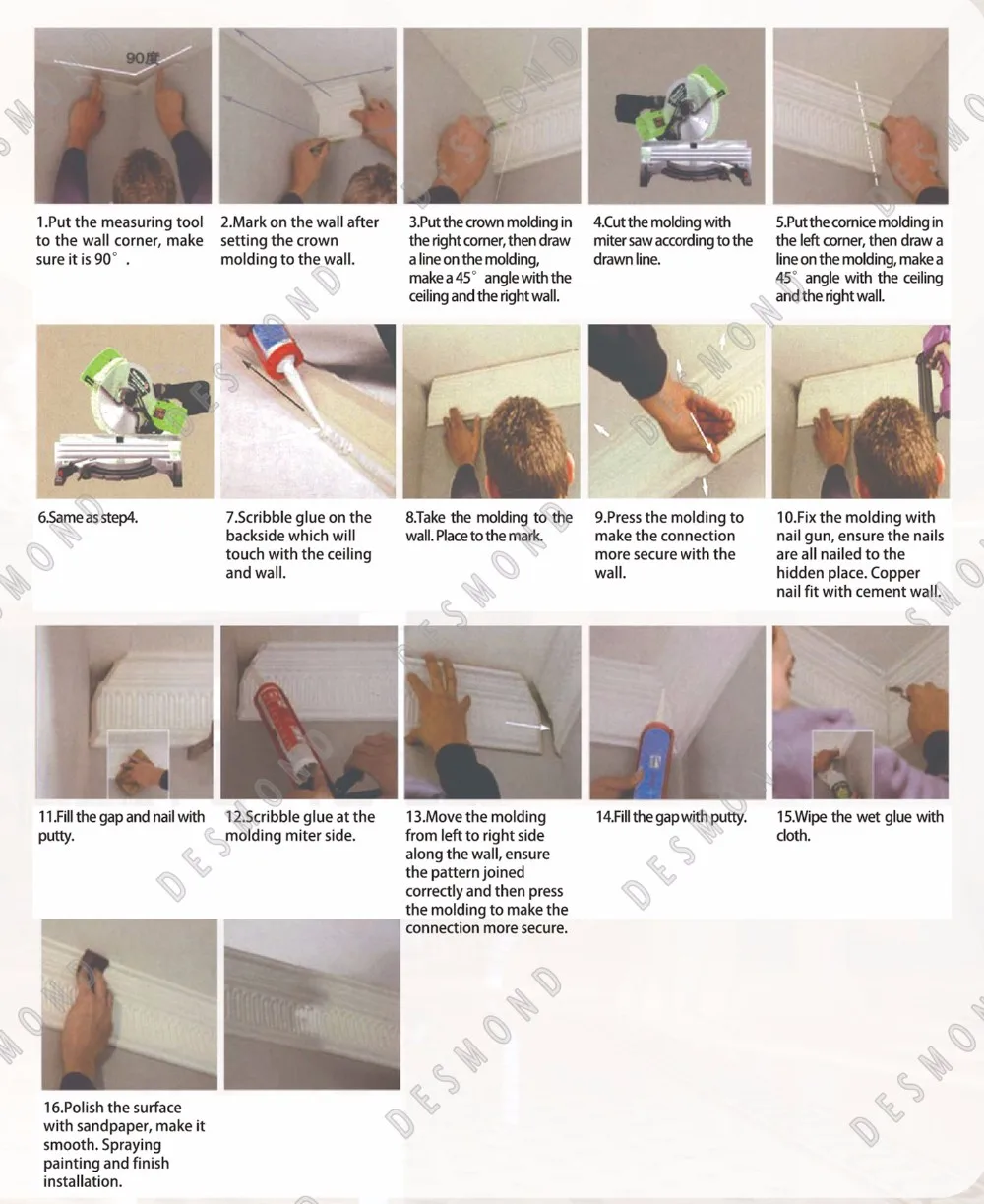 7. How to install the PU cornice mouldings