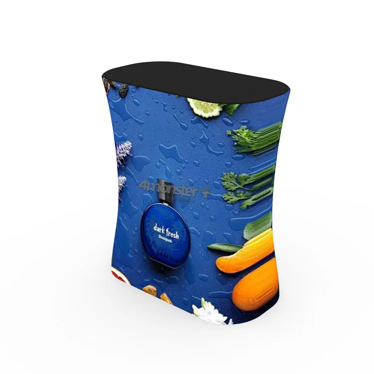 This portable display board promotion counter is combined with aluminum frame and high quality tension fabric,and the dye-sublimation printing is ensured by imported Japnese printing machine and Italian ink,so the images will be of high resolution, which means your information will be expressed super clearly.