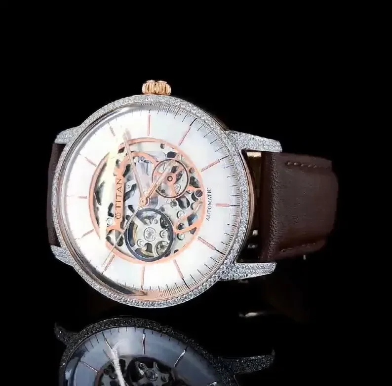 Мужские часы со скелетом и бриллиантами