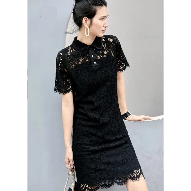 Женское прямое хлопковое платье до колен с коротким рукавом и воротником «Питер Пэн»