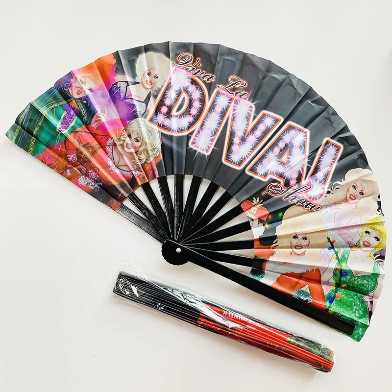 УФ-свечение большой рэйв-бамбуковый складной Ручной Веер