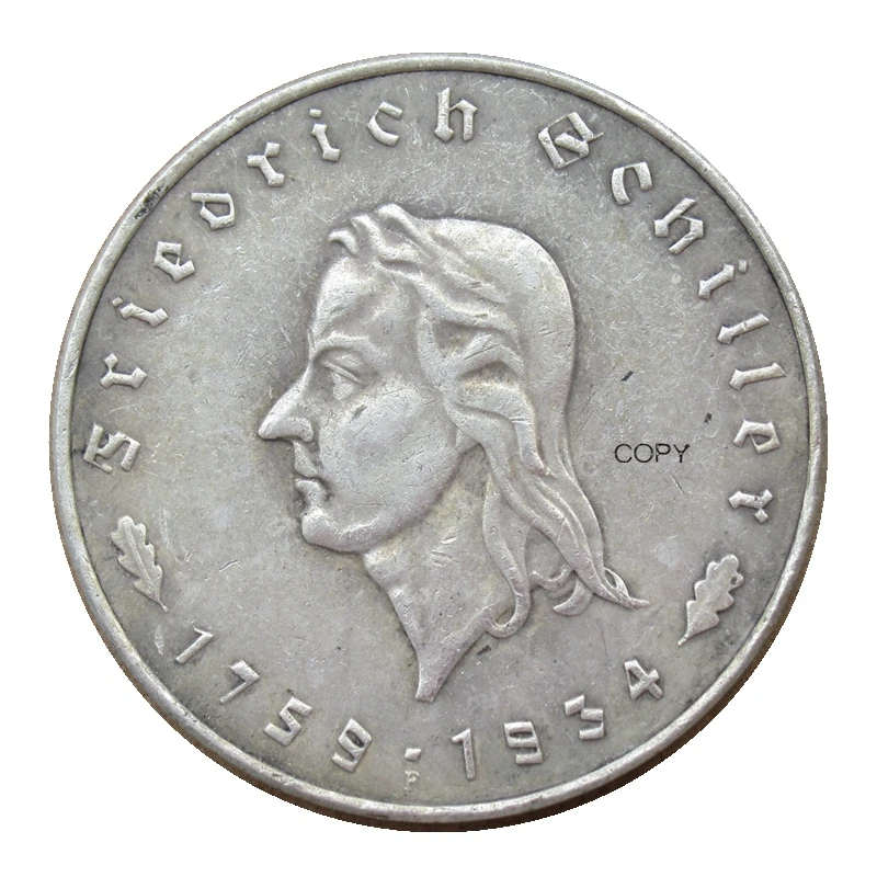 Воспроизведение, Германия, 5 монеты с серебряным покрытием 1934 пробы Фридриха шилера