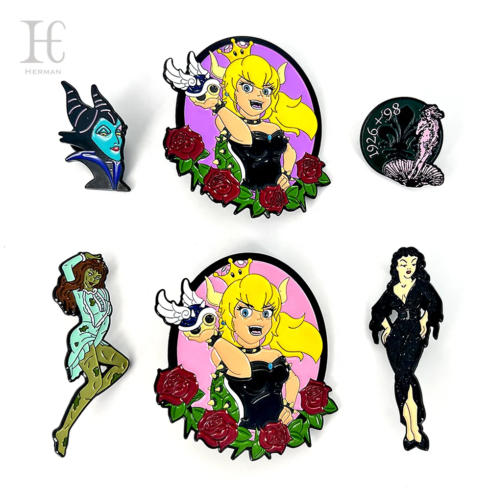 Бесплатный образец высококачественные индивидуальные металлические значки с мультяшными булавками мягкие жесткие эмалированные женские на лацкан