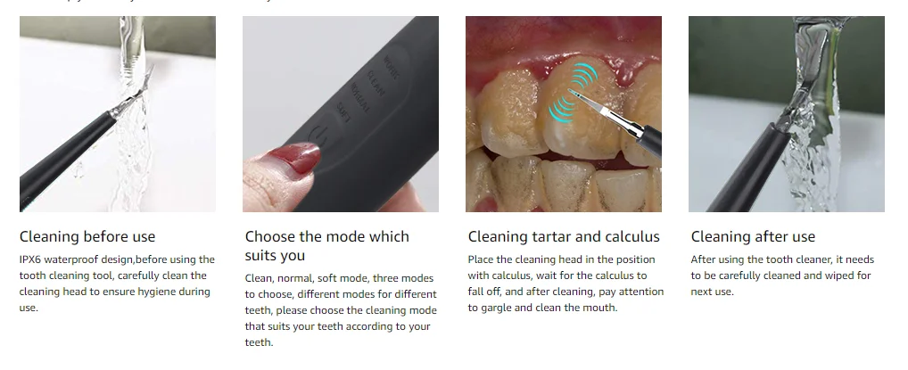 Everyone has varying degrees of calculus, and your dentist will tell you that calculus is formed by hardened plaque, and many dental diseases are caused by tooth tartar and calculus. Toothbrushes can only be used to clean food residue left on the surface of the teeth and do not remove stubborn teeth. Going to the dental hospital for dental cleaning is the most common way to remove calculus. In addition, you can also use a household dental teeth cleaner to remove the calculus at home ,then you can save the trouble and time of going to the hospital to clean your teeth.