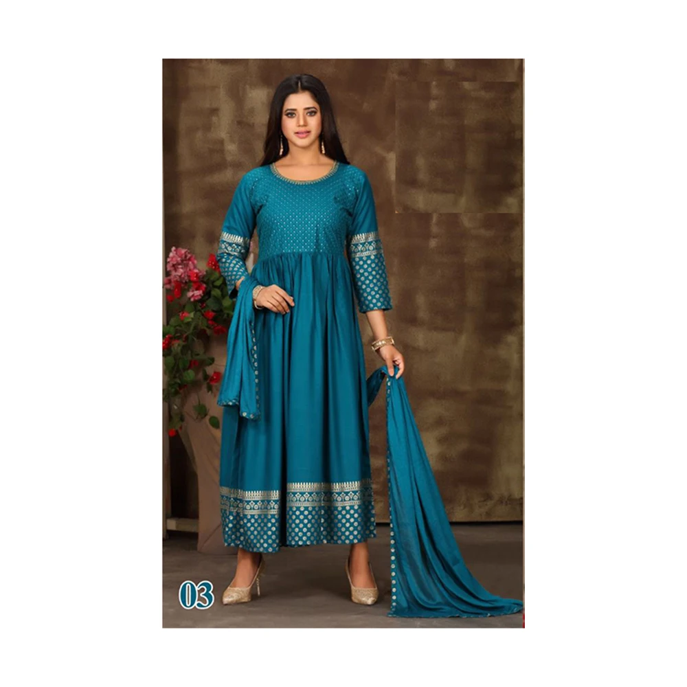 Новейшая новая дизайнерская коллекция длинного платья Reyon с последовательной работой и дупаттой по оптовой цене