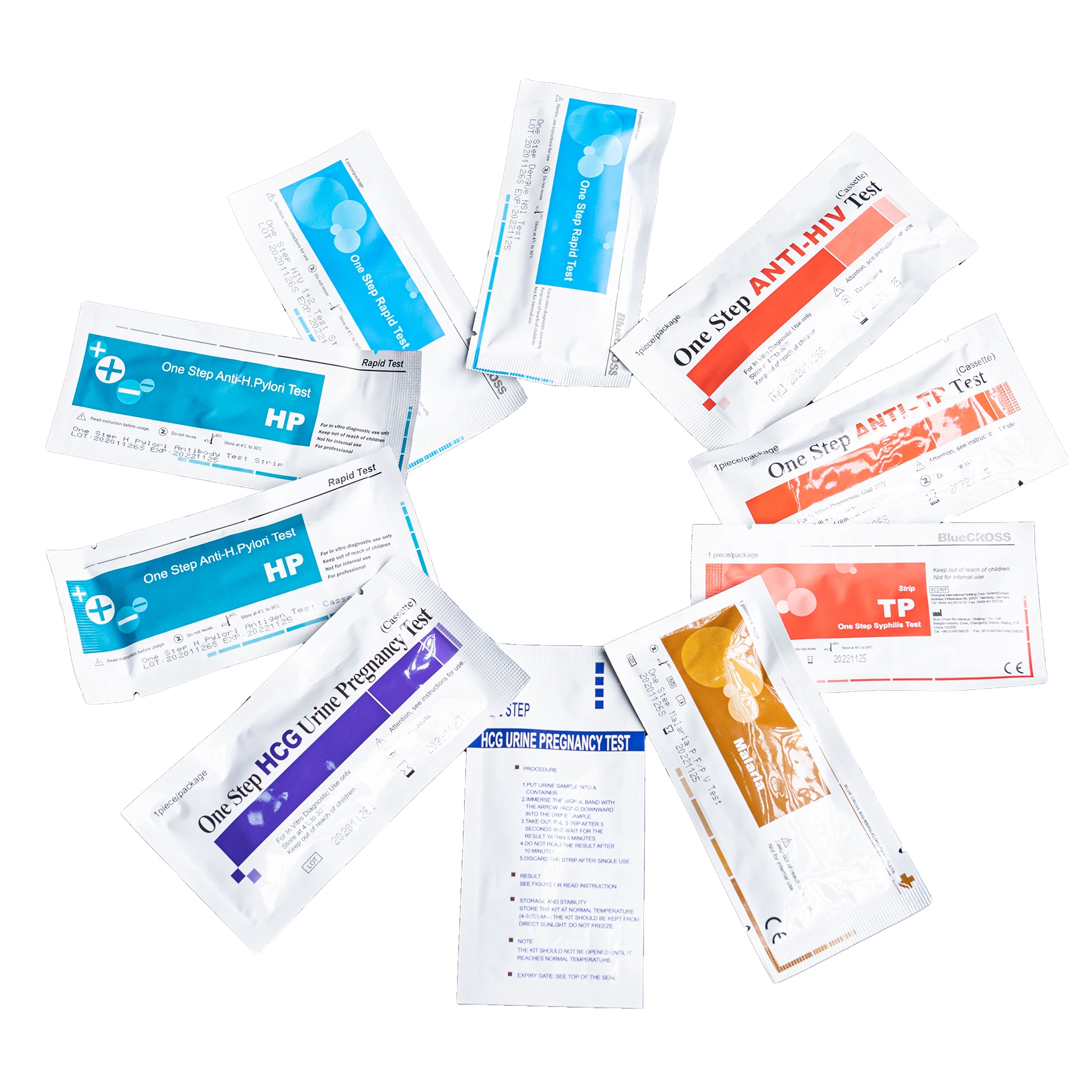test kits, infectious diseases test kits, sexually transmitted diseases test kits, tumor marker testkits and drug of abuse test kits. Our facility is GMP, ISO9001 and ISO13485 certified and we have CE approvals.