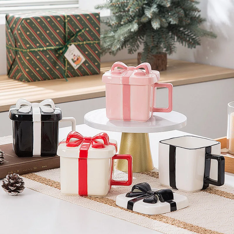 Рождественский подарок креативные квадратные керамические кружки с ручкой 400 мл большая емкость Подарочная коробка крышками