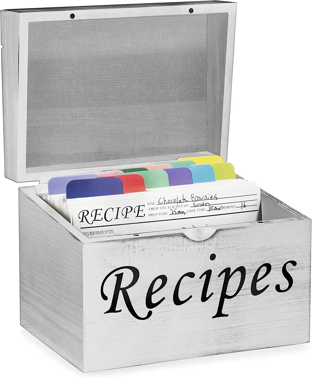 Деревянная винтажная коробка для рецептов белая деревянная с карточками и разделителями