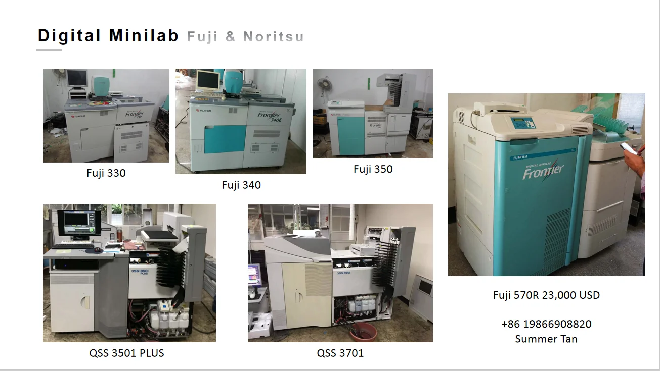 Our machines are all collected from Japan and we do fully recondition for our machines. They are all in very good condition. We are 12- year Gold Supplier of Alibaba. We are specialized in digital minilabs, spare parts, photo paper, chemical etc.
