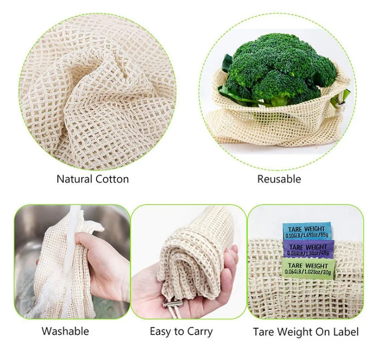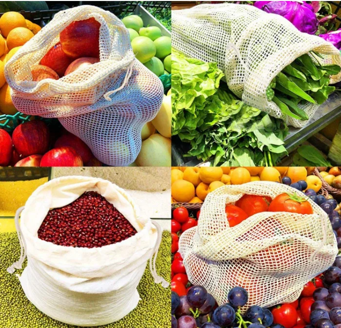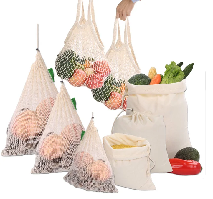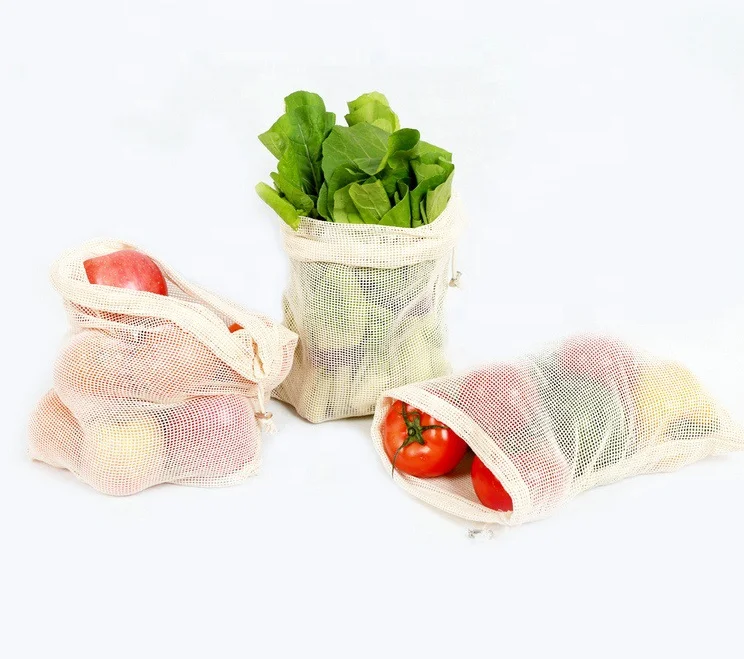 eco friendly cotton produce bag onion potato tomato net bag mesh drawstring bag