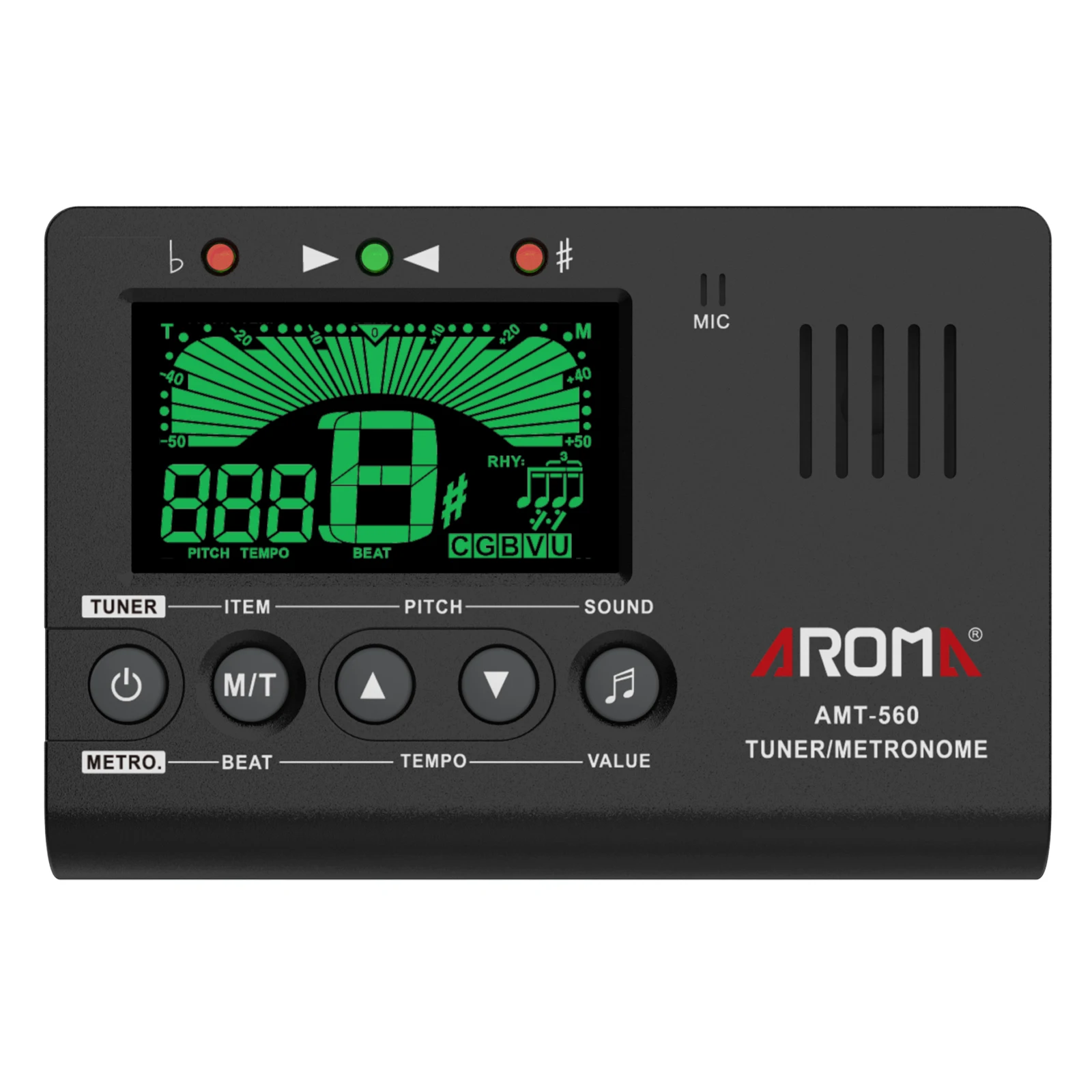 Ароматический AMT-560 Встроенный микрофон с звукоснимателем 3 в 1 метроном/тюнер/тональный генератор для хроматической гитары бас-укулеле скрипки