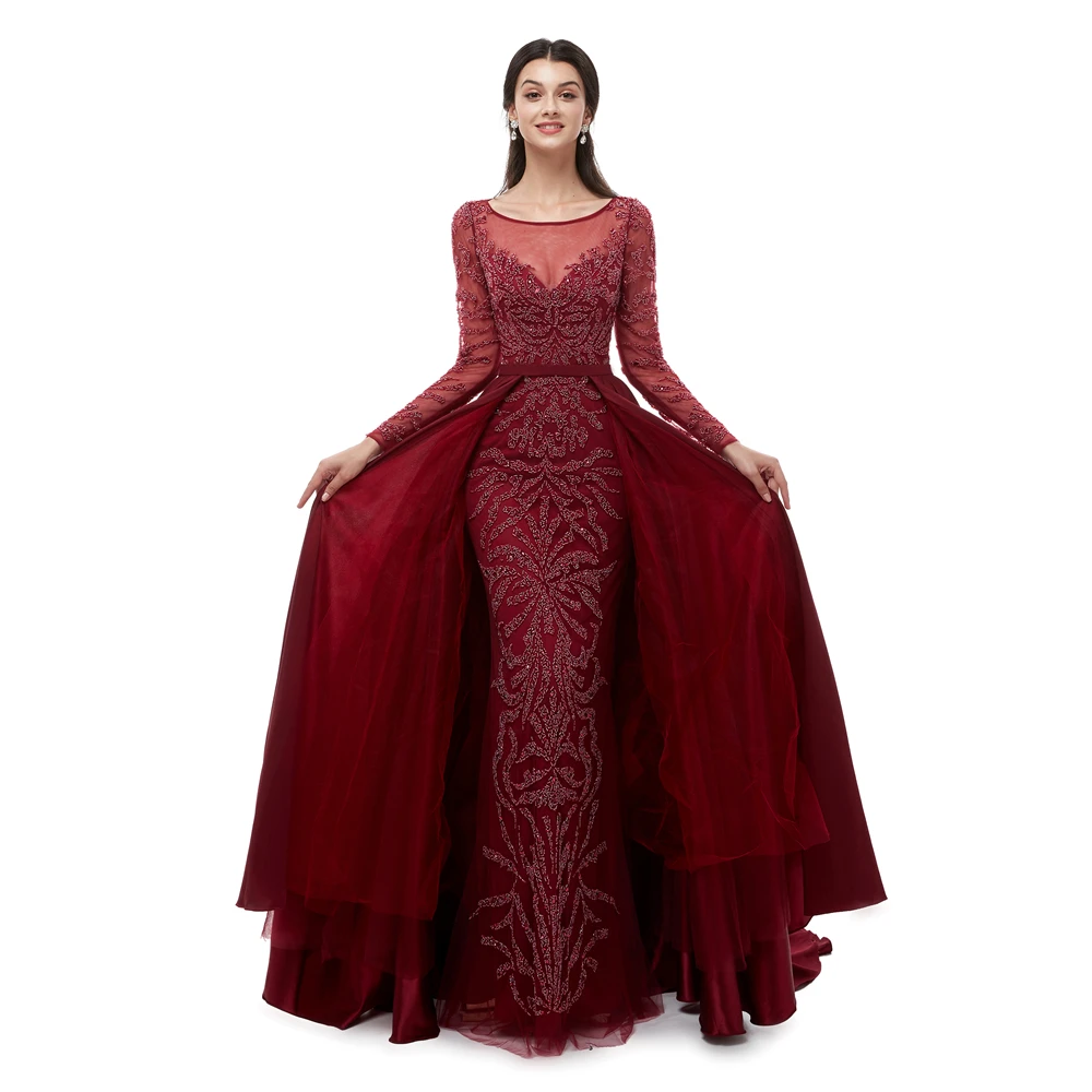 Женское платье для выпускного вечера, Бордовое платье большого размера с крупными бусинами, индивидуальный пошив, 2019 реальное фото