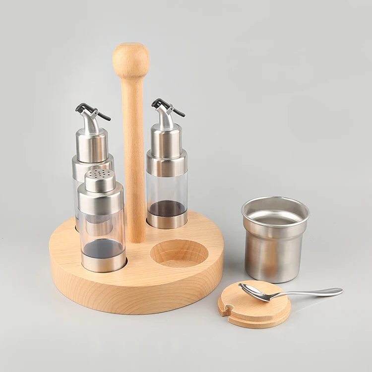 Набор приправ из нержавеющей стали в скандинавском стиле набор диспенсеров для масла и уксуса с бамбуковой основой