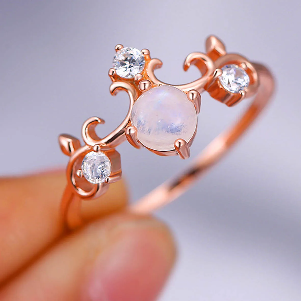 925 стерлингового серебра розового золота обручальные кольца с нашивкой в виде на безымянном пальце ювелирные изделия для женщин кольцо Королевской короной круглый лунный камень
