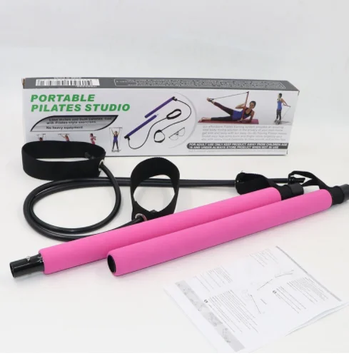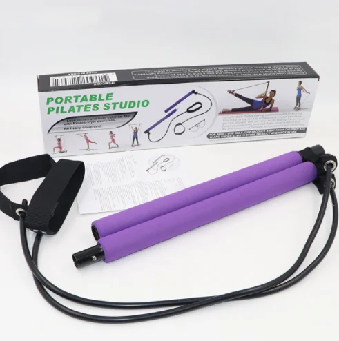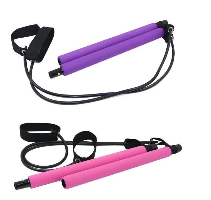 Portable Yoga Exercise Pilates Bar with Foot Loop for Total Body Workout Trainer
