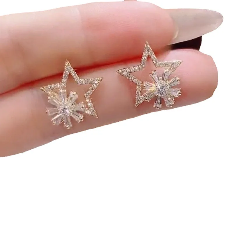 Серьги-гвоздики с пятиконечными звездами серебро 925 пробы