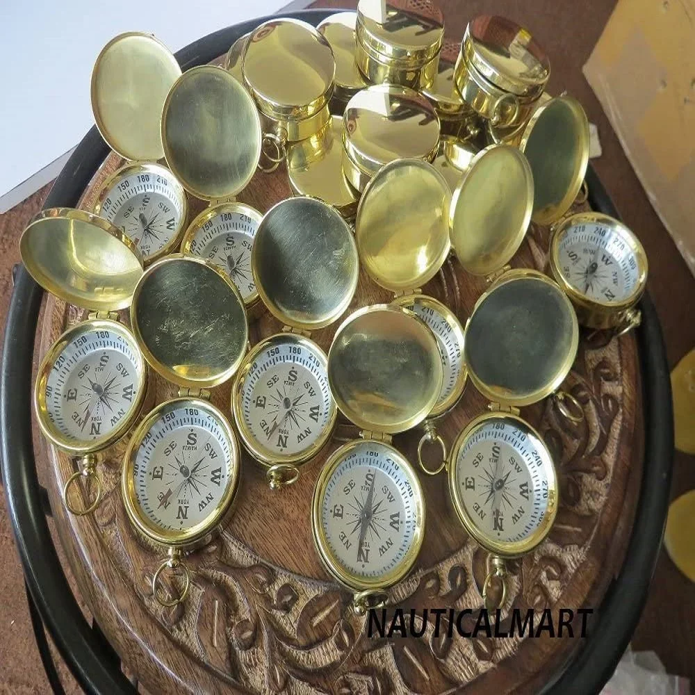 2 "латунь цепочка с плоским плетением компас с деревянной коробкой ~ Карманный компас винтажная морская латунь отделка ~ со светодиодной кольчуга компас Декор