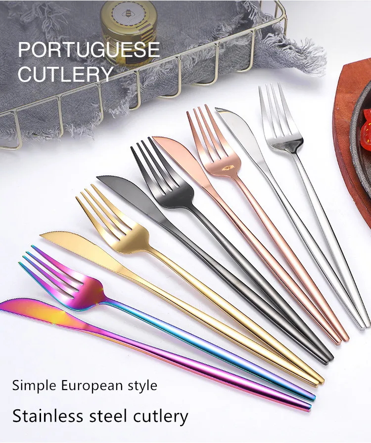 Высококачественные многоразовые наборы столовых приборов из нержавеющей стали с логотипом различных цветов