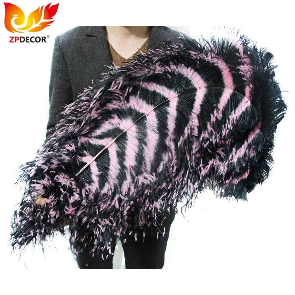 Профессиональный поставщик ZPDECOR оптовая продажа 70-75 см полосатые окрашенные черные и розовые большие длинные страусиные перья для карнавальных костюмов