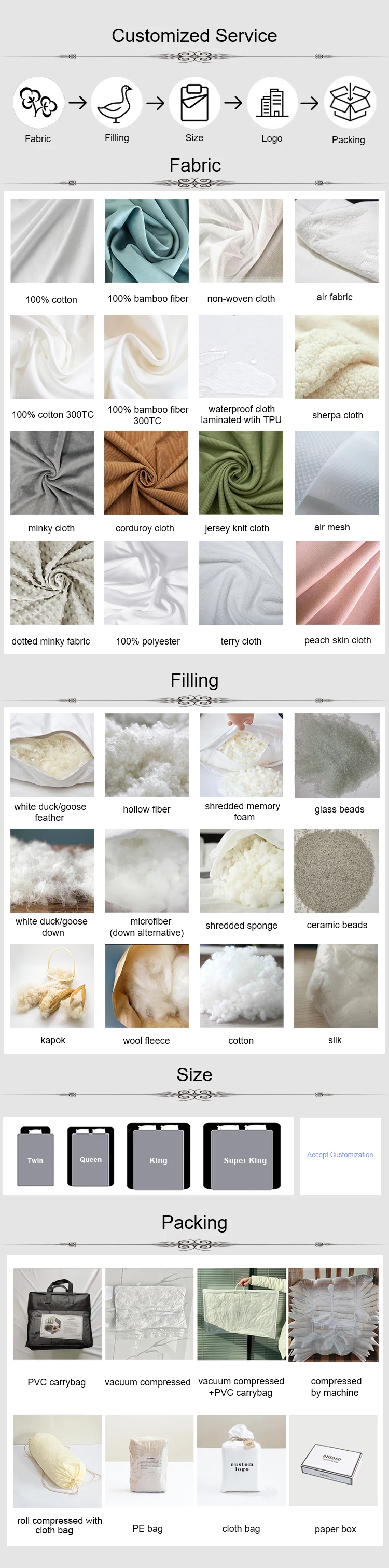 Filling | 100% polyester filling,600g Filling and filling weight can be customized |