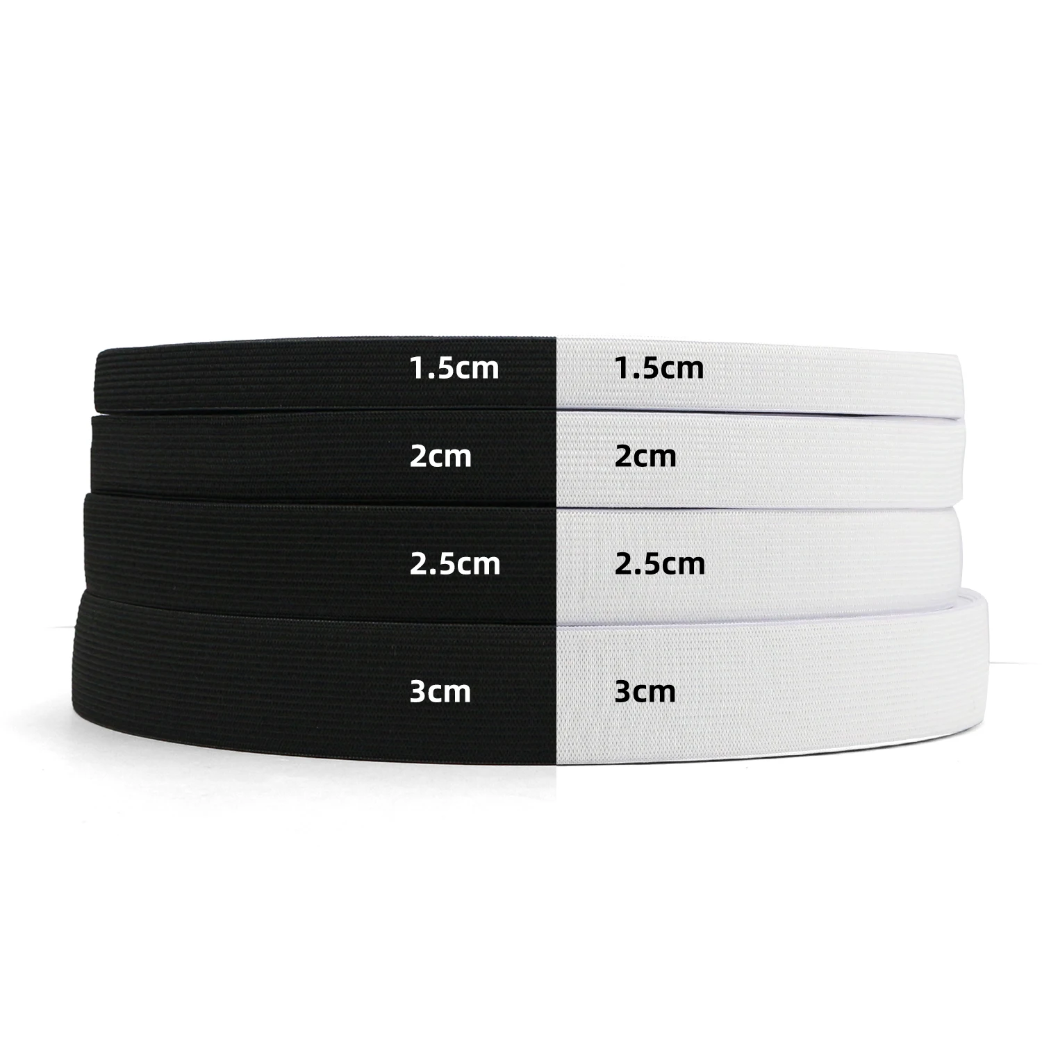 Product Name | Factory Stock Sale Multi Widths Black and White Flat Knit Elastic Spool Band for Crafting, Sewing, Pant & Wig Making |