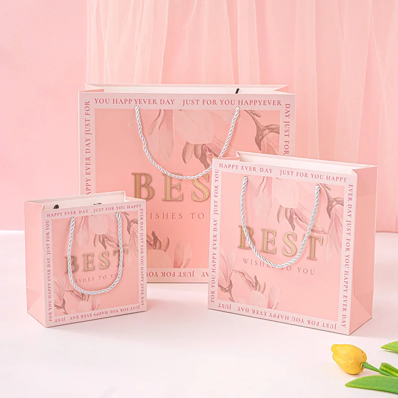 С наилучшими пожеланиями розовая бумага Ювелирные изделия Косметическая одежда обувь упаковка бумажный пакет подарок Шоппинг бумажный мешок с ручкой