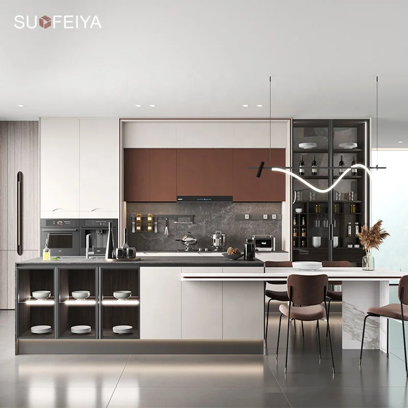 SUOFEIYA современный изготовленный на заказ плоская упаковка глянцевый УФ-лак 2Pac серые кухонные шкафы для дома 22 164,51-26 843,04 ₽