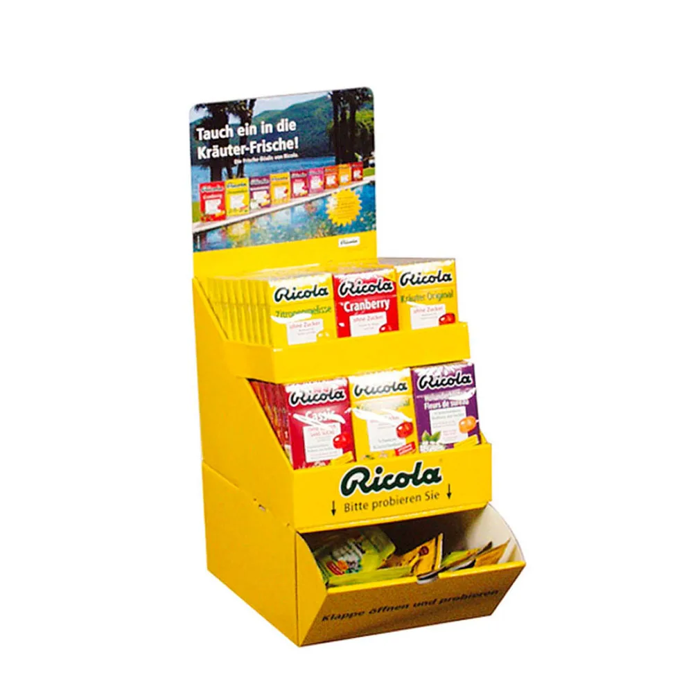 Розничная акция Двухуровневая Складная витрина для столешниц с гофрированными картонными лотками конфет и упаковки пищевых продуктов