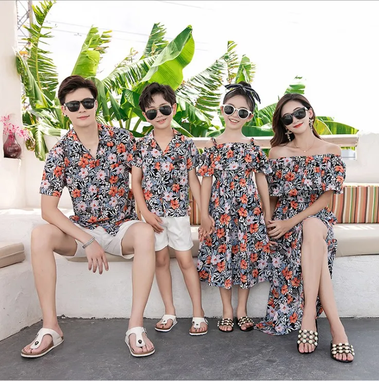 Оптовая продажа; Одежда для всей семьи; Летние Гавайские рубашки; Рубашки из 100% хлопка; Повседневная рубашка с короткими рукавами и принтом; Гавайский комплект