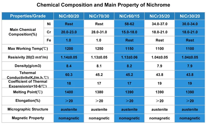 Our resistance heating alloys are available in the following product forms and sizes: | ||||||||