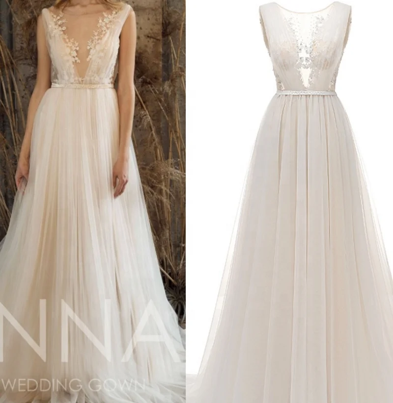 #1045 Простое Элегантное винтажное платье с открытой спиной без рукавов с круглым вырезом и аппликацией в богемном стиле пляжное свадебное платье А-силуэта свадебные платья