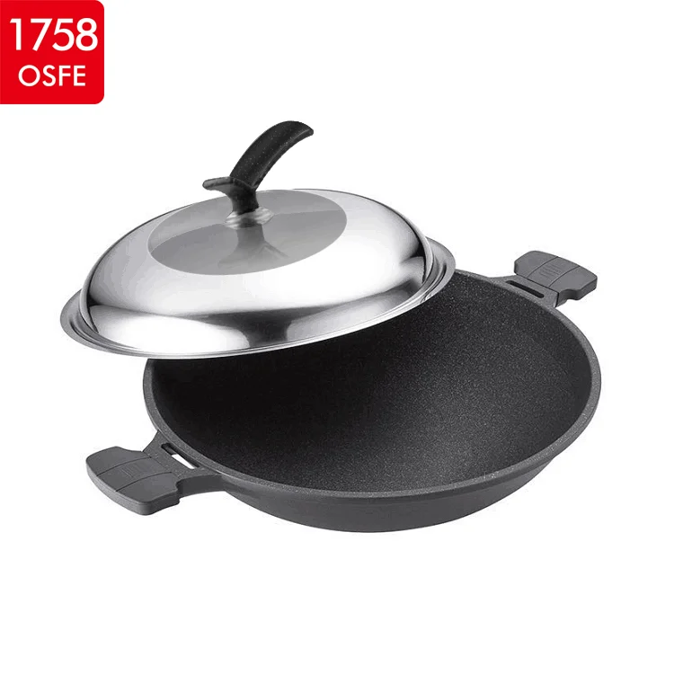 Высокое качество антипригарная 38 см литье под давлением алюминиевая кухонная посуда Большой вок с крышкой