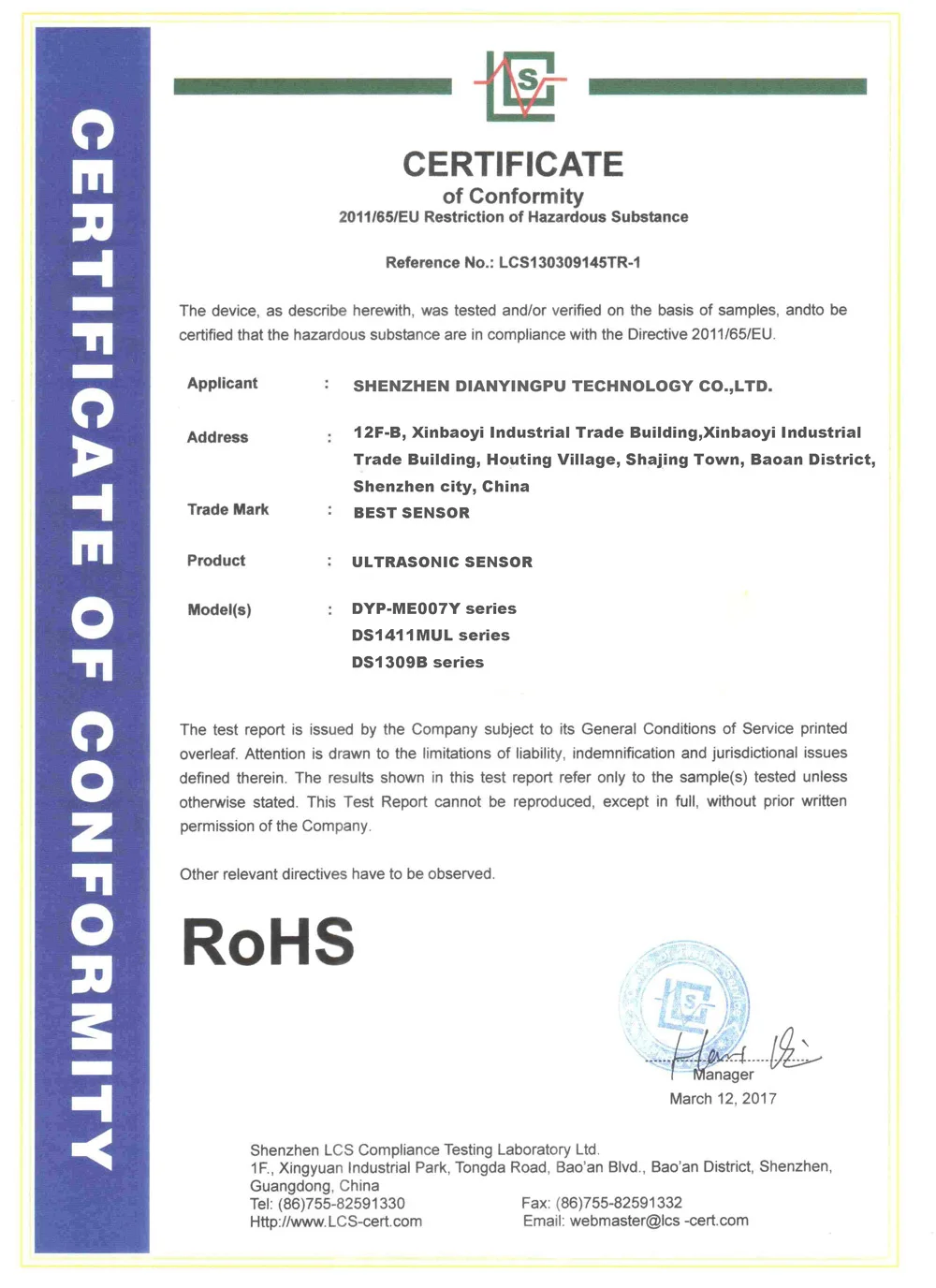 Мы были основаны в 2008 году, расположены в Шэньчжэне, Китай, с удобным доступом к транспортировке, Шэньчжэнь DIANYINGPU TECHNOLOGY CO LTD является профессиональным производителем и экспортером, который специализируется на проектировании, исследованиях, разработка и производство ультразвукового датчика. Все наши продукты соответствуют международным стандартам качества и высоко ценятся на различных рынках по всему миру.