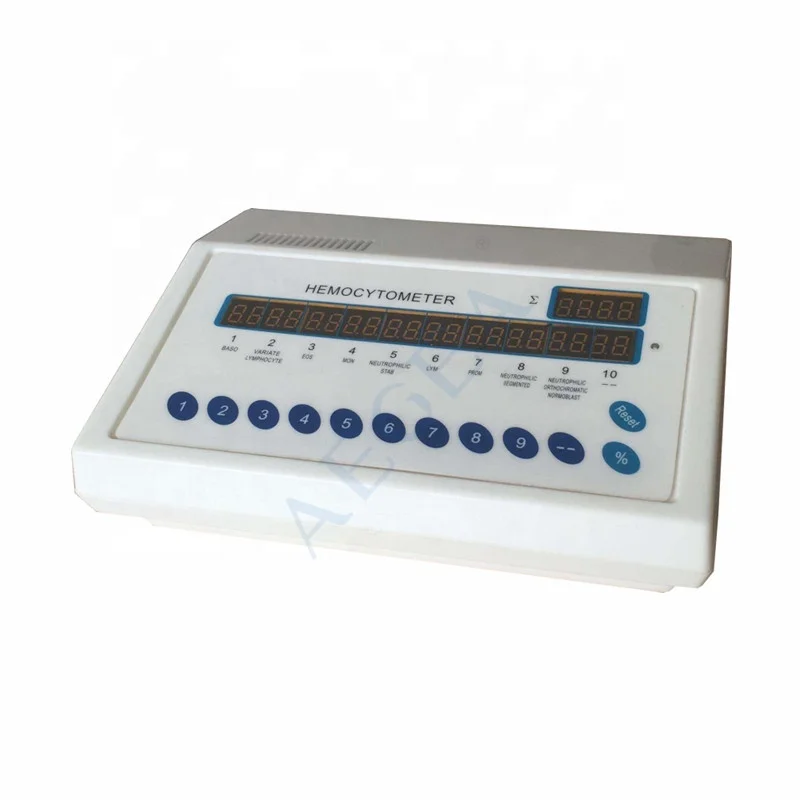 Digital Display Blood Cell Counter is a microcomputer calculator integrated with counting, analysis and monitoring with ten groups, two’s place and ten carries.