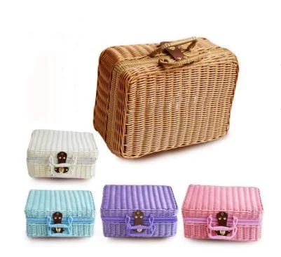 Оптовая продажа плетеная пластиковая корзина для хранения из ротанга ручной работы корзина для пикника